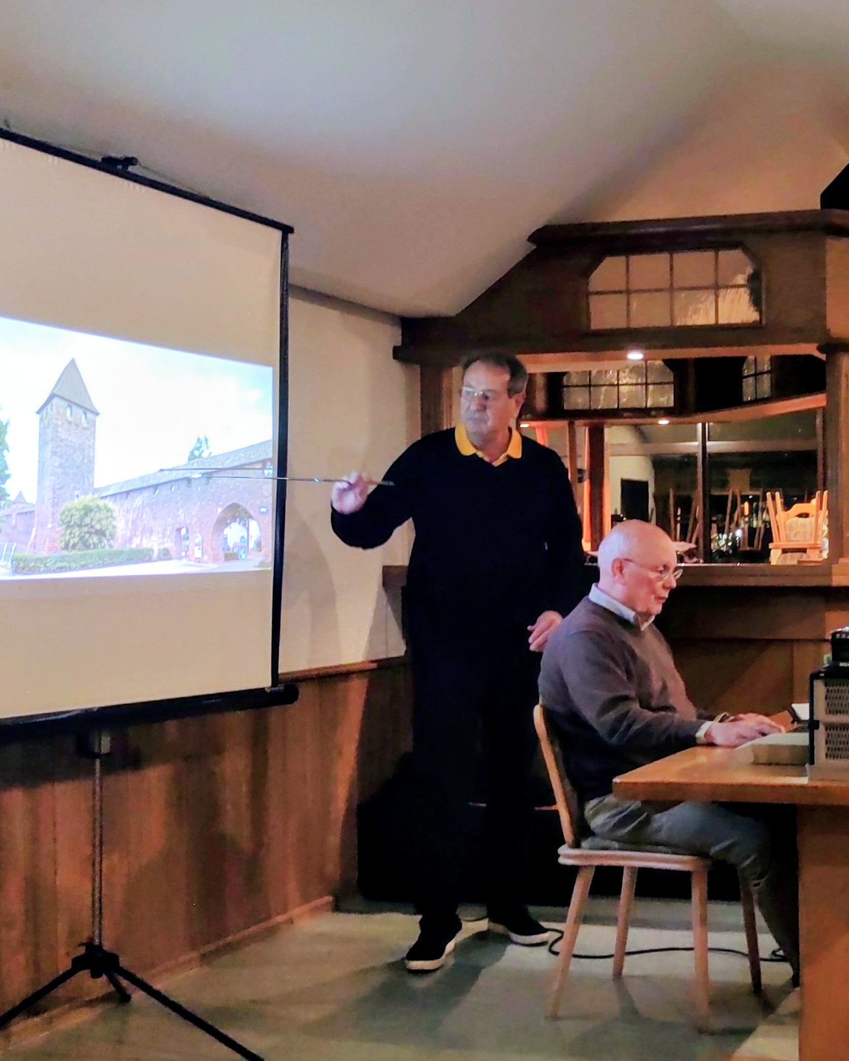 Zum Ausklang der Versammlung ließen die beiden Vorsitzenden Jöckel und Steinert in einem Bildervortrag die Veranstaltungen und Exkursionen von Oktober 2024 bis Oktober 2025 Revue passieren.