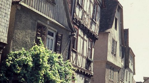 | Nur zu oft wurden in Bensheim prägnante Gebäude abgerissen und durch gesichtslose Neubauten ersetzt. Hier ist dies allerdings genau andersherum. Wer den baulichen Zustand des Wambolter Hofes in Bensheim in der Fotografie von 1975 betrachtet, der wundert sich eher, dass dieses Gebäude mit großem Aufwand saniert wurde und nicht – wie so viele andere in diesem Bereich – der Abrissbirne zum Opfer fiel. Ein Glücksfall für den Erhalt des Wambolter Hofes war sicher der Hessentag im Jahre 1976, als sich Bensheim den Gästen von seiner schönsten Seite präsentieren wollte. Und was war da besser geeignet als frisch herausgeputzte Fachwerkgebäude? Unser Bild des unsanierten Gebäudes verdanken wir Christina Glaubach, deren Familie mit ihrer Konditorei und dem dazugehörigen Café im Jahre 1976 als einer der ersten Mieter das neue Schmuckstück der Innenstadt bezog. Bis heute waren verschiedene Gastronomen im Wambolter Hof ansässig; außerdem befindet sich im Keller das PiPaPo-Theater. (Text: Thomas Neu, 17.3.2021; Altes Foto: 1975, Quelle: Christina Glaubach; eues Foto: Thomas Neu, 2019) | |