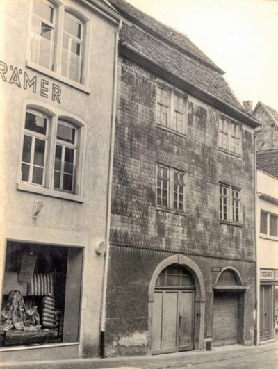 Das Haus in der Schuhgasse 9 besaß einen besonderen Charme: Die Fassade war mit Holzschindeln verkleidet – ein in städtischen Bereichen eher seltenes, handwerklich aufwändiges Detail. Das Erdgeschoss wurde von einem markanten Rundbogenportal geprägt, und die kleinen Sprossenfenster unter dem steilen Satteldach verliehen dem Gebäude eine bodenständige, zugleich würdige Ausstrahlung. Stilistisch lässt sich der Bau auf das 17. oder frühe 18. Jahrhundert datieren und war somit ein anschauliches Beispiel für bürgerliche Wohnkultur jener Zeit. Trotzdem fiel auch dieses Haus dem Zeitgeist der Nachkriegsjahre zum Opfer: Obwohl vom Krieg unversehrt geblieben, wurde es 1961 abgerissen – ein Schicksal, das viele historische Gebäude in dieser Zeit teilten. Der nüchterne Nachfolgebau, der an seiner Stelle errichtet wurde, vermag aus heutiger Sicht kaum die gleiche Ausstrahlung zu entfalten. Der Abriss ist rückblickend kaum nachvollziehbar. Er steht exemplarisch für eine Phase, in der das Alte oft als hinderlich galt und wenig Wertschätzung für historisch gewachsene Stadtbilder bestand. (Text: Thomas Neu, 28.5.2025; altes Bild: Eugen Burkhardt, 1961; neues Bild: Thomas Neu) |